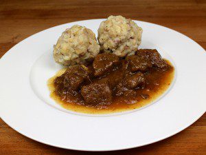 Südtiroler Rindsgulasch mit Speckknödeln