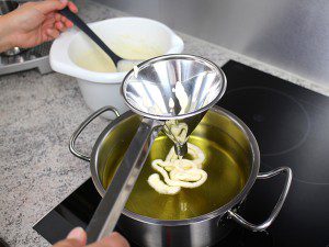 Teig in den Trichter geben