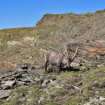 In diesem Abschnitt wird es deutlich steiler, für den Rückweg sollte man ausreichend Trittsicherheit mitbringen. Man befindet sich jetzt auf dem Teil des Weges, auf dem man mit etwas Glück auf Steinböcke treffen kann. Da der Monte Scorluzzo alles andere als überlaufen ist und das „laute“ Stilfser Joch nun weit genug entfernt ist, fühlen sich die Steinböcke in dieser Gegend sehr wohl.