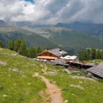 Für den Rückweg ohne Abstecher geht es nun erst einmal wieder über das schöne Almengebiet zurück zur Oberweißbrunner Alm. Weit unten im Ultental kann man den Weißbrunner Stausee sehen. Wer gute Augen hat, kann vielleicht sogar sein Auto auf dem Parkplatz erkennen. Der Weg führt nun an mächtigen Hängen entlang und deutlich bergab. Man folgt weiter der Ausschilderung zur Fiechtalm, biegen also noch einmal links und einmal rechts ab und erreicht, nach einem letzten steilen Stück bergab, die hübsch gelegene Fiechter Alm (bewirtschaftet von Mitte Mai bis Ende Oktober). Von der Oberweißbrunner Alm bis zur Fiechter Alm braucht man etwa 1 Stunde.