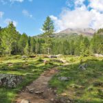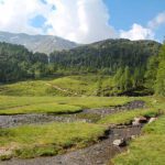Im mäßigen Anstieg geht es nun taleinwärts weiter – mit einem traumhaften Blick auf die umliegende Bergwelt. Dieses ausgedehnte Almgebiet im Ultental wird auch „Auf die Plöder“ genannt. Auf dem Weg zum Langsee, dem Hauptsee der sogenannten Weißbrunner Naturseen, kommt man noch an kleineren Seen vorbei. Wer nach rechts oben blickt, kann den Grünsee (2.529 m) erkennen, den höchstgelegenen Stausee des Ultentals. Daneben liegt die Höchsterhütte. Knapp 40 Min. nach der Oberweißbrunner Alm steht man dann vor dem Langsee, der in einer kleinen Mulde am Fuße der Ortler Alpen liegt.
