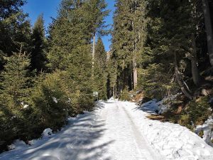 Entlang der Rodelbahn durch den Wald