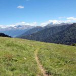 Nach einem kurzen Anstieg wandert man jetzt auf dem aussichtsreichen Höhenweg, der am Westhang des Watles entlangführt, nahezu eben dahin. Der Steig weist keine Schwierigkeiten auf, Trittsicherheit und Schwindelfreiheit sind aber trotzdem Voraussetzung. Vom Höhenweg hat man durchgängig einen grandiosen Ausblick auf die umliegende Bergwelt. Genau vor uns liegen zum Beispiel die mächtigen Gipfel der Ortlergruppe. Auch den Wasserfall, der nun deutlich unter uns liegt, kann man noch einmal gut sehen. Eine ¾ Stunde später biegt man rechts ab. Nun ist man auf dem leicht bergab führenden Weg Nr. 8A unterwegs.