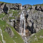 Bald erblickt man auch schon die „Schwarze Wand“ mit ihrem mächtigen Wasserfall. Man quert den Bach über eine Brücke und erreicht nach etwa 40 Min. die bewirtschaftete Schliniger Alm, wo man auch Käse aus eigener Produktion kaufen kann (im Sommer von Ende Mai bis Ende Oktober/Anfang November geöffnet).