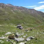 Von hier sieht man auch schon die Alte Pforzheimer Hütte (heute als Museum genutzt) und die Sesvennahütte. Neben der Pforzheimer Hütte liegt der Pforzheimer See, in Kombination ein tolles Fotomotiv! 5 Min. später erreicht man die Sesvennahütte (im Sommer von Anfang/Mitte Juni bis Ende Oktober geöffnet),