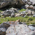 Bis zum etwa 2 km entfernten Sesvennasee muss man fast 400 Höhenmeter überwinden. Es wird also ordentlich steil! Zum Weiterwandern geht man rechts an der Sesvennahütte vorbei und folgt nun Weg Nr. 5 in Richtung Sesvennasee. Auf einem kleinen Pfad geht es jetzt den Hang hinauf. In den Geröllhaufen links des Weges kann man häufig Murmeltiere entdecken. Wer leise ist, kann das typische Murmeltierpfeifen hören, mit dem diese Gefahren (in diesem Fall also uns) ankündigen.