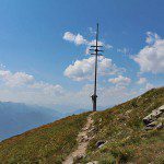 Vom Panoramatisch geht es wieder zurück an die Stelle, wo man vorhin scharf rechts abgebogen ist. Der Weg führt nun zunächst steil bergab, danach geht es relativ eben auf einem Grat-ähnlichen Stück, weiter. Nach ungefähr einer halben Stunden erreicht man das Wetterkreuz. Auch wenn der Weg vom Panoramatisch bis hierher keine wirkliche Schwierigkeit aufweist: Der Weg ist nicht empfehlenswert für Menschen mit Höhenangst, denn an manchen Stellen ist der Weg doch relativ ausgesetzt.