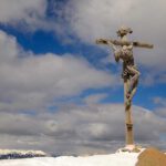 Bis zum Gipfel braucht man von der Hütte aus gut 20 Minuten, der Weg wird nun etwas steiler. Danach steht man vor einem der beeindruckendsten Gipfelkreuze Südtirols. Das Gipfelkreuz wurde im Jahr 2001 neu errichtet. Die Skulptur wurde von dem Grödner Künstler Josef Bernardi geschnitzt und besteht aus Zirbenholz. Das Kreuz selbst ist über 7 Meter hoch, die Jesusfigur misst etwa 3,30 Meter.