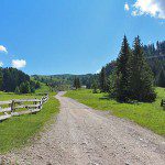 Kurz darauf erreicht man eine breite Almstraße, hier biegt man rechts ab. Am nächsten Abzweig bleibt man auf der Almstraßee, nun geht es auf Weg Nummer 24 weiter. Nachdem man etwa eine halbe Stunde gewandert ist, hat man die Wahl: Links zweigt ein Steig in den Wald ab, geradeaus geht es auf der Almstraße weiter. Da man auf der Almstraße die schöneren Ausblicke hat, wandern wir auf dieser weiter. Der Weg führt im gesamten Verlauf der Wanderung übrigens stetig bergauf, allerdings ist die Steigung zum Großteil mäßig.