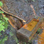 Die nächsten 5 Minuten führt der Weg in engen, steilen Kehren einen Waldhang hinunter. Unten angekommen, biegt man links ab und folgt weiter dem leicht bergab führenden Weg. Kurz darauf erreicht man die Eisenquelle. Ebenso wie Schülerbrünnl weist diese eine rötliche Färbung auf, was an dem hohen Anteil an Eisen, Mangan und Nickel liegt. Auch wenn dieser Quelle eine heilkräftige Wirkung zugesprochen wird, ist das Wasser als Trinkwasser ungeeignet.