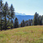 Ungefähr zehn Minuten später geht es im Wald weiter, im weiteren Verlauf lichtet sich der Wald aber immer wieder, so dass man die tolle Aussicht ohne Einschränkung genießen kann. Nach etwa einer halben Stunde Gehzeit erreicht man den Wuhnleger, eine Almwiese, die auf etwa 1400 Metern liegt. Den Abstecher zum Wuhnleger Weiher (ein Muss für alle Dolomiten-Fans!) habt man sich besser für den Rückweg auf, da dann die Sonne etwas tiefer steht und die Fotos eindeutig besser werden.