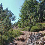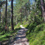 An der großen Wegkreuzung biegt man rechts ab und folgt weiter der Ausschilderung zur Tschafonhütte (Weg 4A). Die nächsten 5 bis 10 Minuten geht der Weg ziemlich steil bergauf, danach erreicht man wieder einen Abzweig und verlässt den steilen, zum Teil asphaltierten Weg und folgt dem Weg 4A, einem schönen Waldpfad. Man könnte zwar auch auf dem asphaltierten Weg bleiben, der Waldpfad ist aber eindeutig schöner.
