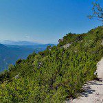 Wenn man die Tschafonhütte erreicht hat, sind es bis zum Gipfel der Völseggspitze noch etwa 100 Höhenmeter. Man geht zunächst durch die Bankreihen der Tschafonhütte hindurch und folgt dann dem Weg Nummer 9. Die auf dem Wanderschild angegebenen 20 Minuten sind sehr sportlich bemessen, denn nach einem relativ flachen Anfangsstück wird der Waldpfad merklich steiler, bis man dann die Völseggspitze erreicht. Wer eher gemütlich unterwegs ist, sollte für den Gipfelanstieg eine knappe halbe Stunde einplanen. Alles in allem liegt die Gehzeit bis zur Völseggspitze bei knapp 2 Stunden.