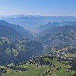 Ein paar Minuten später kommt man erneut an einer Verzweigung, hier rechts abbiegen und dem Weg 4 folgen. Knapp zehn Minuten später biegt man links ab, überquert die Fahrstraße und folgt dann weiter dem Weg Nummer 4. Auf diesem Weg bleibt man jetzt so lange, bis man nach insgesamt gut 1 1/2 Stunden Gehzeit die Tschafonhütte erreicht. Dieser Wegabschnitt bietet immer wieder wirklich traumhafte Ausblicke, zum Beispiel auf den Ritten und die Texelgruppe und auch der Rosengarten und Latemar, die man immer im Rücken hat, kommen stetig näher.