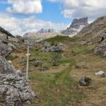 Im leichten Bergab wandert man nun unterhalb des heiß umkämpften Hexenstein (ital.: Sasso di Stria, ladinisch: Sass de Stria) und mit Blick auf den Monte Averau (2649 m) auf einem gut ausgebauten Pfad durch die karge Dolomitenlandschaft. Der Weg weist keine Schwierigkeit auf, gutes Schuhwerk ist aber unerlässlich. Selbst im Juli kann man vereinzelt noch auf Schneefelder treffen. Man kommt an alten Kriegsstellungen vorbei und hält sich danach eher links.