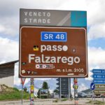 Rechts führt ein weiterer Weg auf den Hexenstein. Vorne kann man den Falzaregopass und die Passstraße sehen, die kurvenreich auf die Passhöhe führt. An der nächsten Weggabelung hält man sich rechts und folgt weiter einem mehr oder weniger gut sichtbaren Pfad. Man wandert nun ein Stück parallel zur Passstraße und erreicht diese schließlich. Hier biegt man rechts ab und steht wenig später vor der kleinen Kapelle und dem Passschild.