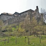Auf der asphaltierten Fahrstraße geht es noch ein kurzes Stück weiter bergauf, bis die Straße eine große Linkskurve macht. Hier biegt man rechts ab und folgt nun der Virglpromenade (Nr. 4, „Schelmwald“). Wenn man am  Abzweig nach rechts blickt, kann man die Haselburg schon auf einem kleinen Felshügel liegen sehen. Auch wenn die vielen Strommasten rund um die Burg wenig charmant wirken – die Haselburg ist trotzdem ein lohnendes Ziel.