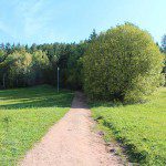 Direkt oberhalb des Parkplatzes geht auch schon der ausgeschilderte Wanderweg Nummer 11 zum Knottnkino los. Der gut ausgebaute Weg führt nun in mäßiger Steigung durch ein kleines Waldstück, bis man schließlich auf eine Fahrstraße trifft. Hier ist das Knottnkino übrigens nicht ausgeschildert. Man biegt hier aber rechts auf die Fahrstraße ab und wandert weiter bergauf. Kurz darauf folgt man weiter der Fahrstraße und biegt rechts ab. Ein paar Meter hinter diesem Abzweig führt rechts ein kleiner Pfad bergauf in Richtung Wald. Diesem Pfad und der Ausschilderung Knottnkino folgen. Der Weg wird nun merklich steiler.