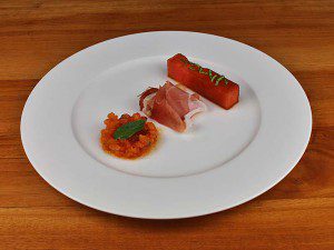 Wassermelone mit Südtiroler Speck und Tomaten