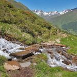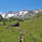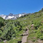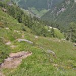 Der Weg führt stetig leicht – an manchen Stellen auch etwas steiler – bergauf durch eine herrlichen Almenlandschaft. Dabei kann man an den Hängen zur rechten und linken immer wieder sprudelnde kleine Bäche sehen, die besonders im Frühsommer viel Schmelzwasser mit sicher führen.